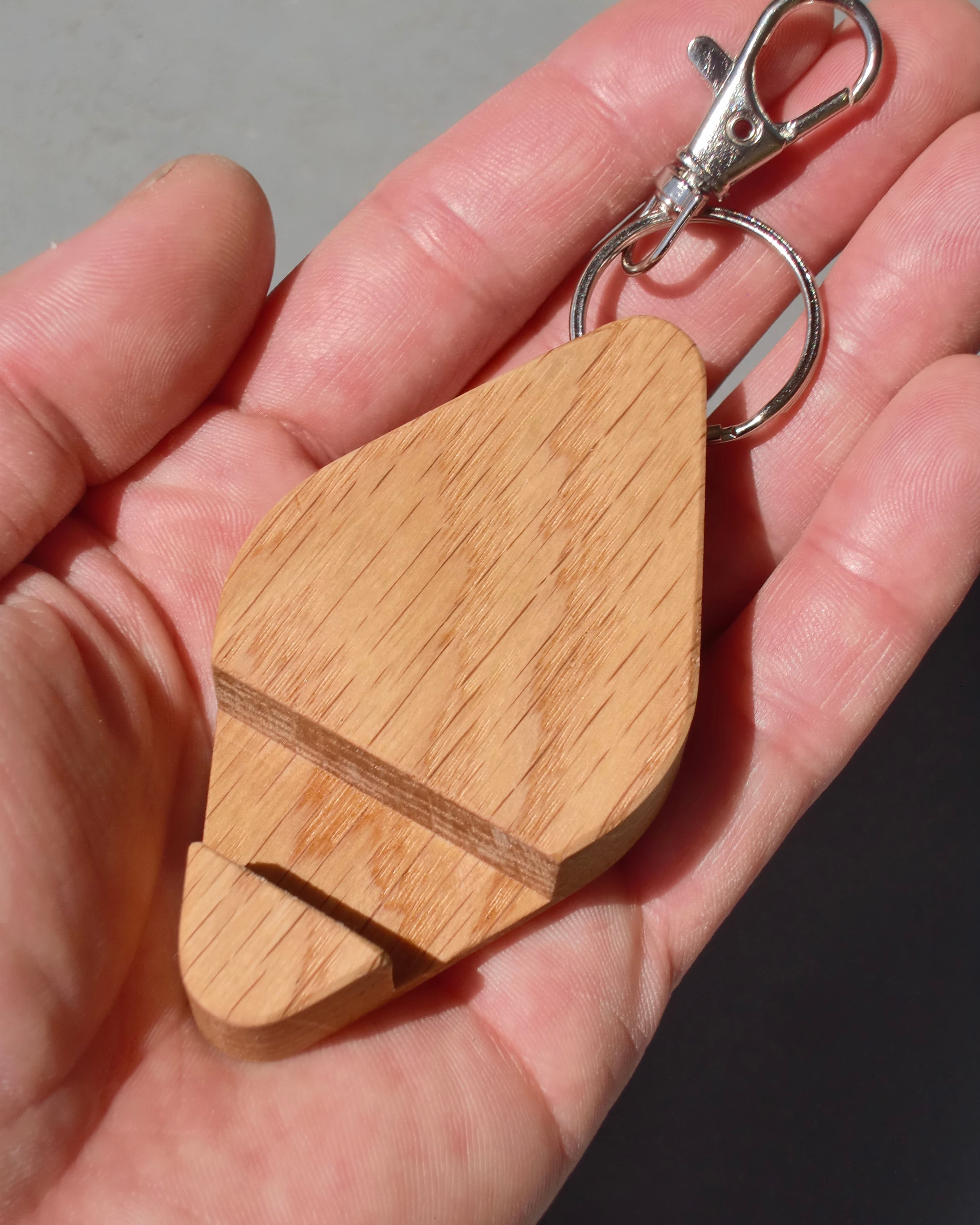 キーチェーンに付けることで木ならではの